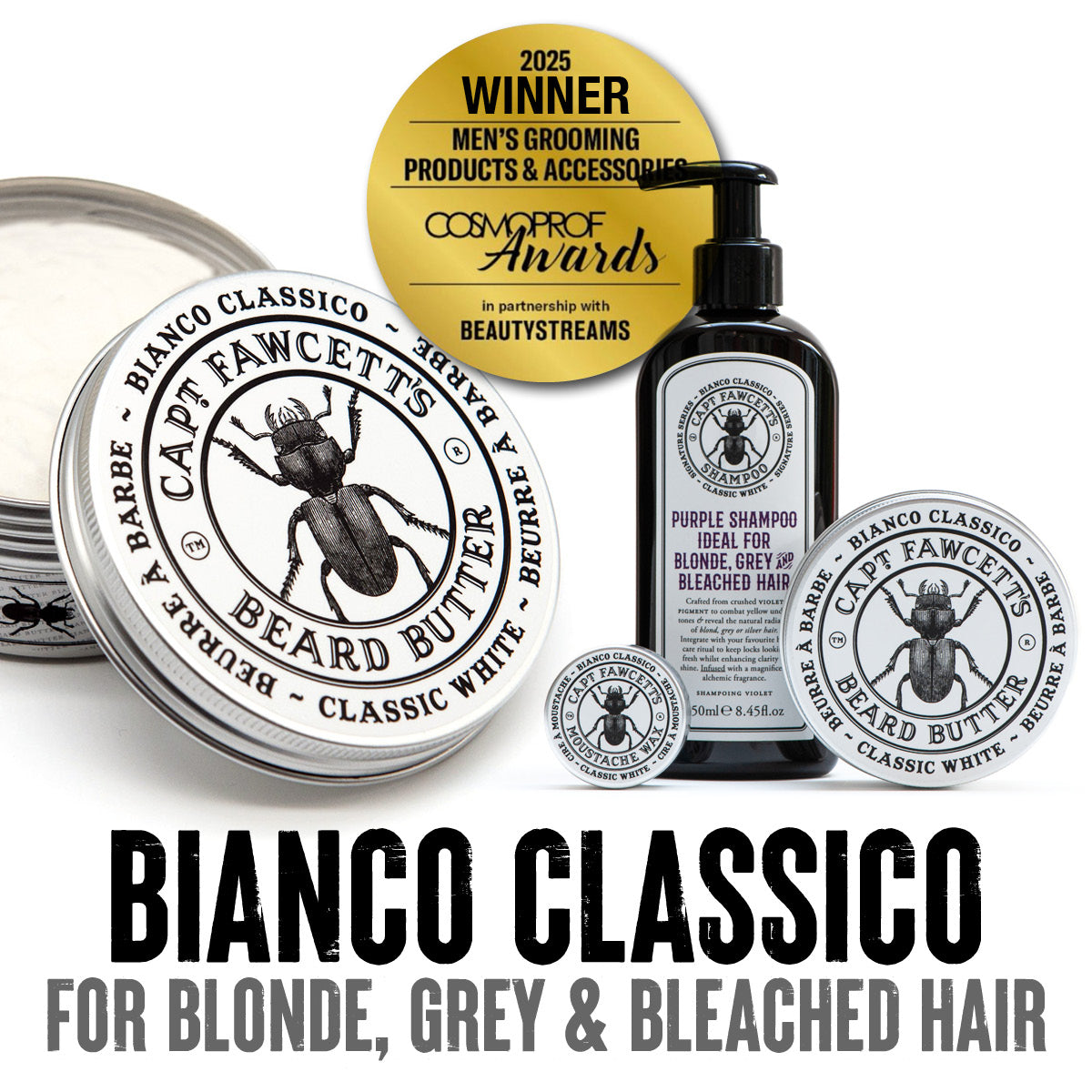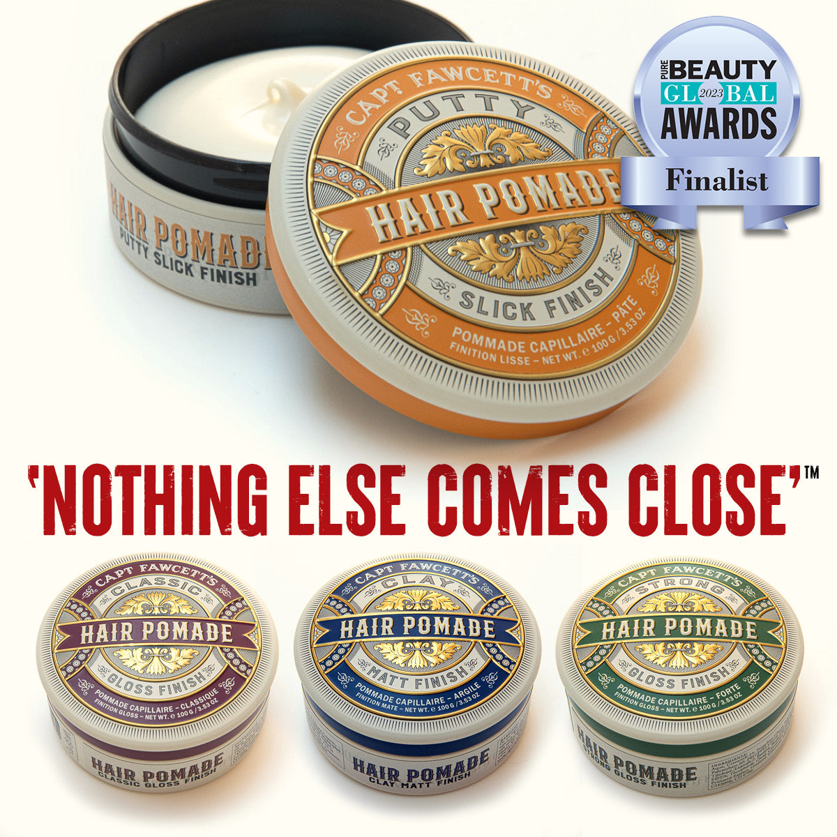A most distinguished Award-Winning pairing for the impeccably groomed gentleman: Captain Fawcett’s Putty Pomade and Matt Styling & Volumising Hair Powder.